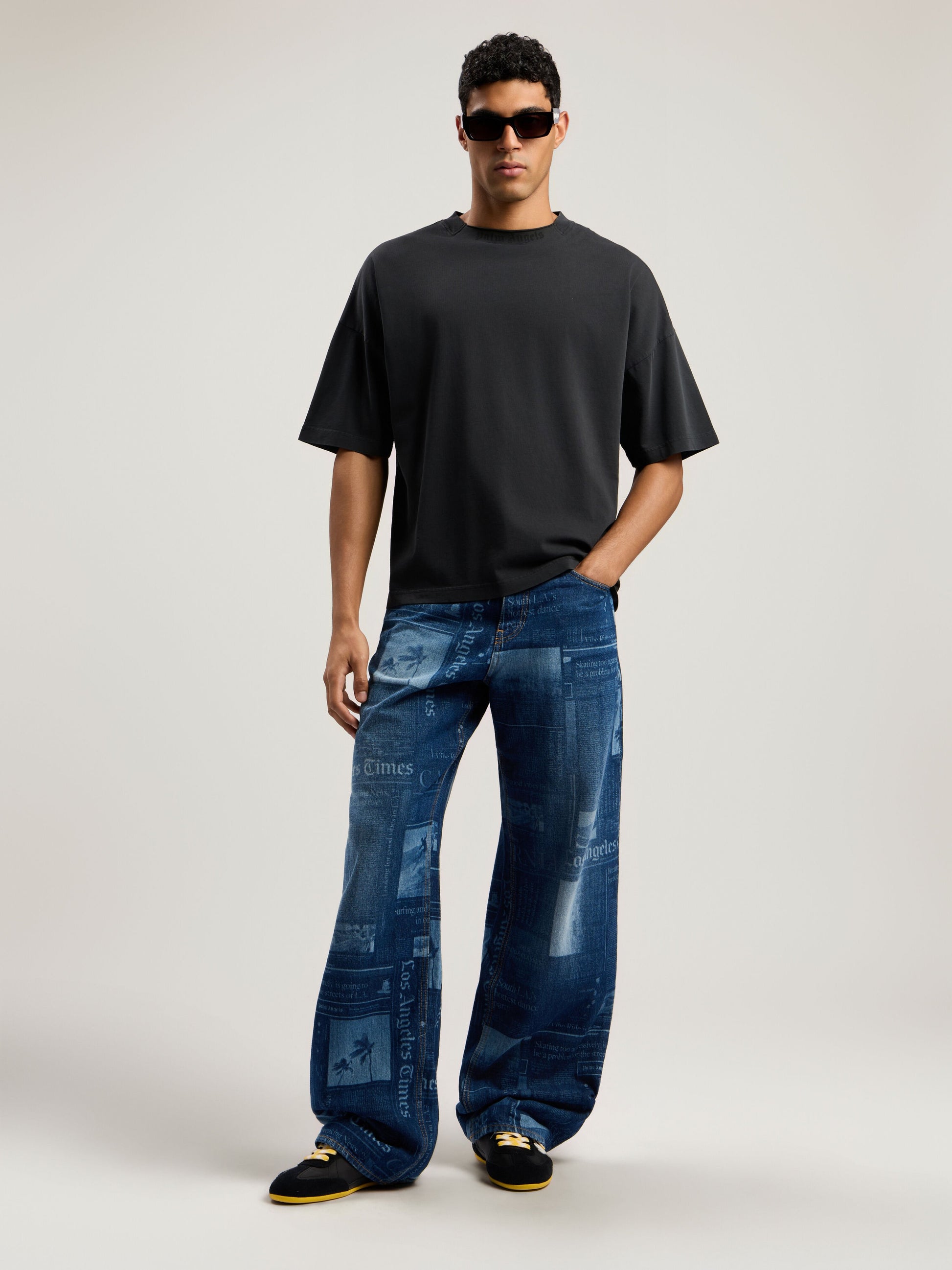 Polera Palm Angels Curved Logo Loose Collar Vintage Black